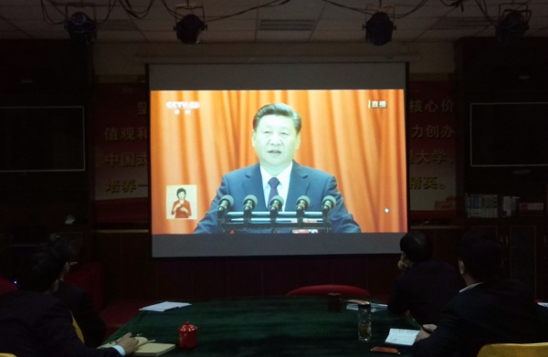 据悉,该院全体师生都对大会召开表示热切关注。通过各种渠道,及时了解大会进展,收听收看开幕会盛况。该院也为师生观看十九大开幕会提供便利条件,在多功能厅、会议室、多媒体教室、食堂等处进行实况转播,观看过程中不时爆发出热烈的掌声。师生们认真做了笔记,并在观看后第一时间展开了热烈的学习讨论。