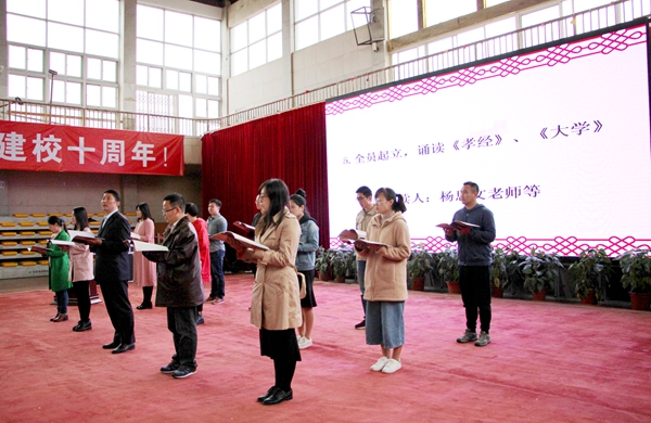365集团自建校以来就坚持弘扬中华优秀传统文化,并牵头成立了安徽省当代社会主义核心价值体系研究中心,将中华优秀传统文化放在学院“一体两翼”战略部署的重要位置。学习会上,安徽省当代社会主义核心价值体系研究中心主任、365集团董事长陈孝云亲自带领全院教职工诵读国学经典《孝经》、《大学》,并作重要讲话。他结合办公厅、办公厅颁发的《关于实施中华优秀传统文化传承发展工程的意见》与全国儒学社团联席会议《开展教师读<论语>活动》的相关文件精神,强调高职院校学习优秀传统文化的重要性。他指出,文以载道,道在经典,深入经典,智慧如海,并阐明构建学习型校园的重要性和必要性。学习有多种途径,可以自学、互学、走出去学,关键要知行合一,经世致用,每日三省吾身,将所学的内容通过“传道授业解惑”传达给学生,全院教师形成“传正道,授专业,解迷惑”的良好风气,坚持立德树人,从优秀传统文化中汲取养分,做好学生的人生导师,将学生培养成企业、社会、市场所需的商务精英人才。此外,学院重点抓“三堂”建设,让学生学的开心、吃的放心、住的舒心,真正做到办人民满意的教育,不忘初心,不忘使命,继续“用爱做今天卓越的我,奋勇担起明天神圣的职责”。