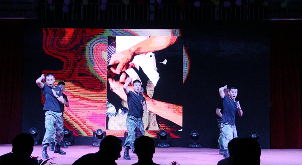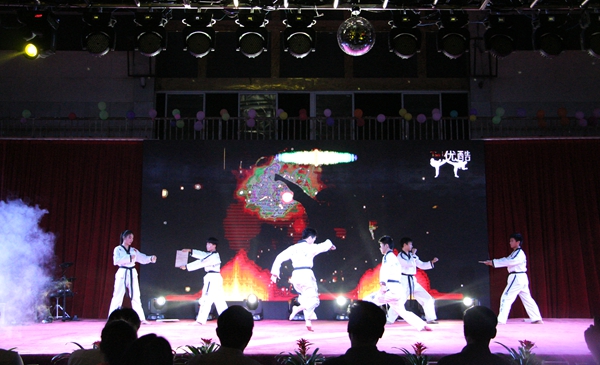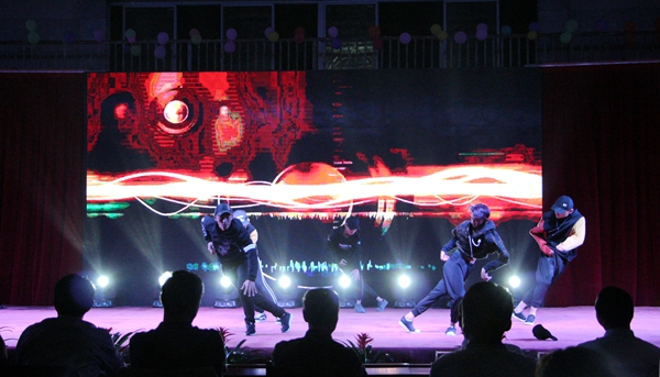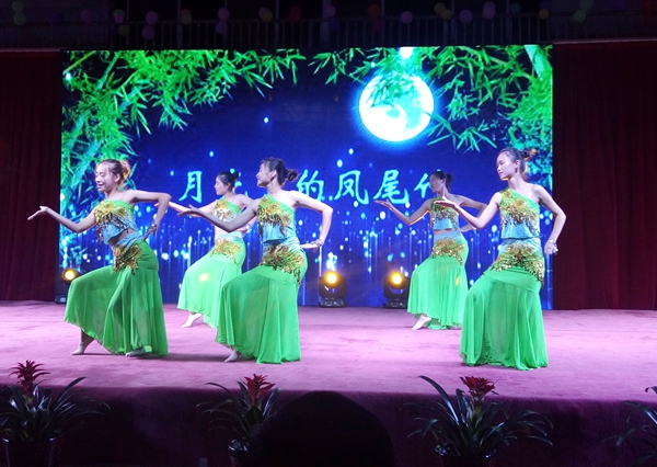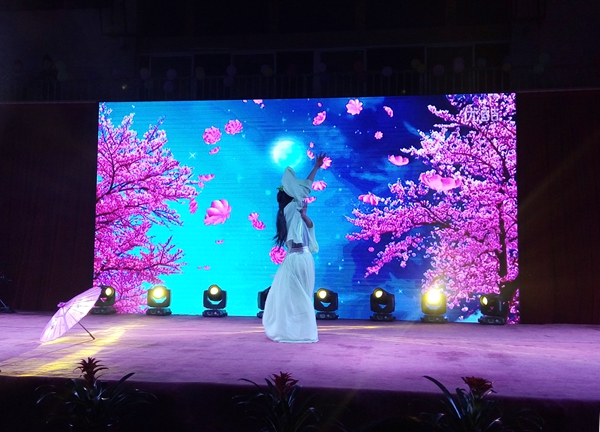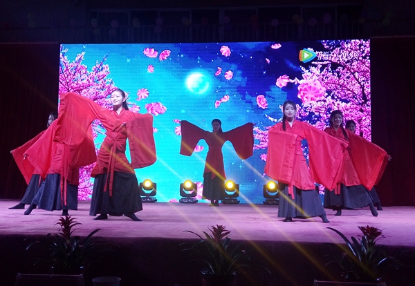 一场令人振奋的灯光秀为晚会拉开了帷幕。小品,舞蹈,歌曲,武术一一闪亮登场。舞蹈《茉莉花》清新典雅、绚烂多姿;小品《群演》让大家捧腹大笑;一支神秘乐队带来的《突然好想你》、《平凡之路》掀起了晚会的高潮;落花有意随流水,流水无情恋落花,表现舞蹈不只是女生的专场,舞蹈《落花情》男生同样也能跳出如此柔情之舞;接下来的古筝表演和武术表演让我们更深刻的感受到了传统文化的悠久;说到傣族,大家可能会想到泼水节、竹林、孔雀,但是最具特色的当然是要数傣族少女们跳的舞蹈了,舞蹈《泉边》的姑娘们舞姿优美曼妙,赢得了台下观众的阵阵掌声;相声是我国传统的语言表演艺术,《哥俩好》让大家连连叫好称赞;除了浓浓的兄弟情,还有一种纯洁而伟大的感情是母爱,夏香等同学的《游子吟》牵出同学们对妈妈的思念;《迷彩之魂》表演让同学们充满对军人的向往。最后,随着《我骄傲我是人》的配乐诗朗诵,慷慨激昂,震撼人心,生动表达了作为人的民族自豪感和自信心,抒发了对伟大祖国繁荣昌盛的美好祝愿。
