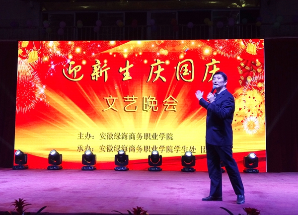 华灯初上,欢聚一堂。晚会伊始,安徽省高等职业院校创新创业联盟常务副理事长、安徽省当代社会主义核心价值体系研究中心主任、365集团董事长、星青年(国际)商学院总培训师陈孝云热情致辞。他指出,在这丹桂飘香、秋高气爽的美好夜晚,我们欢聚一堂,共同庆祝祖国68周年华诞,共同祝福祖国繁荣昌盛,共同祝愿绿海学院明天更加美好。在这美好的季节里,我们迎来了2017级新生,在此,对同学们的到来表示热烈欢迎。今天是孔子的诞辰,今年是学院办学十周年。就在前几天,著名经济学家、经济学界泰斗厉以宁老师来到绿海学院看望大家,肯定了学院十年来的办学成果,既是对我们的关怀和厚爱,同时也勉励全体绿海人砥砺前行,努力把绿海星青年培养成大国工匠型人才,更好地服务地方经济腾飞。十年来,绿海学院秉承“海纳百川,经世致用”的校训精神,践行“成就一学生,幸福一家庭”的办学使命,致力于把学生培养成一专多能、素质全面的创新创业型商务精英。新的校园、新的生活,将通过同学们的努力从这里起飞,新的起点、新的梦想将通过你们的奋斗去开启精彩之路。