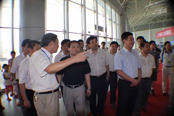 肥西县县委书记陈晓波在我院展位前与常务副院长丁元生亲切交谈