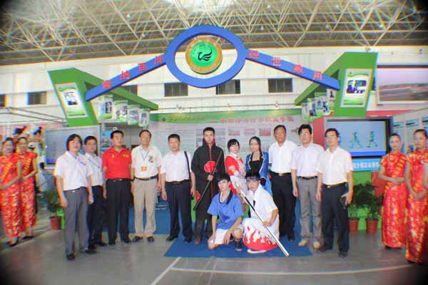学院领导与工作人员在展区前合影留念
