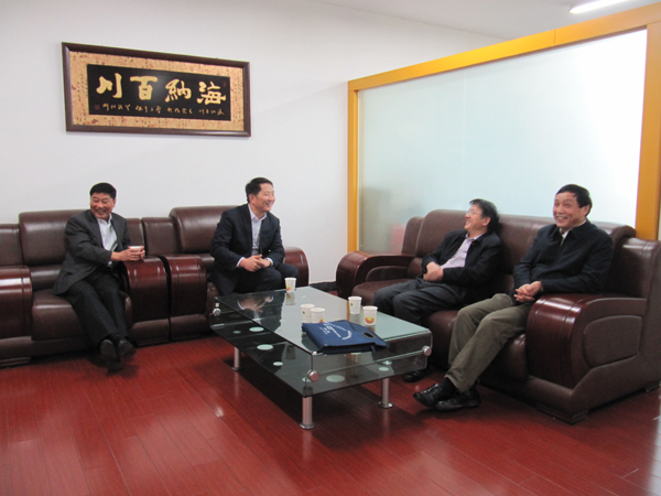 【4月2日,省委教育工委常务副书记高开华(右二)莅临绿海学院调研指导工作,并与董事长陈孝云亲切交谈】