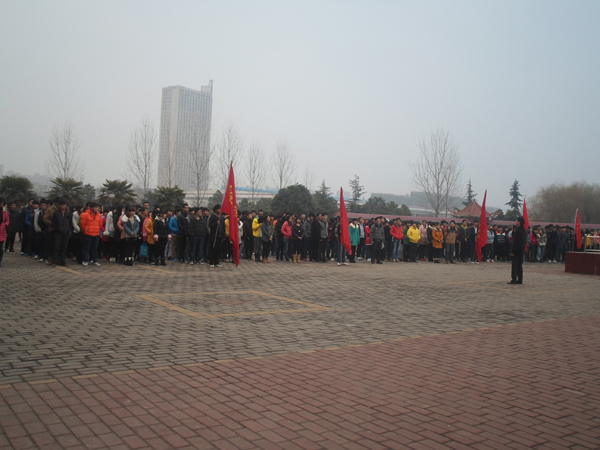 2月24日清晨,由管理系承办的我院2013-2014学年第二学期第一次升旗仪式在科技楼门前广场举行。管理系主任张学锋、学生处副处长程光胜、管理系党总支副书记钱曼丽、信息系党总支副书记张绪川、经贸系党总支副书记高明、各系团总支书记、全院辅导员及师生参加了此次仪式。