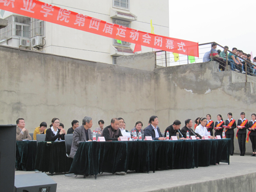 4月17日下午,学院第四届体育运动会闭幕式在田径场隆重举行,党政领导江传瑞、许崇正、常林虎及全院师生出席了闭幕式,此次闭幕式由院长助理孙成玖主持。