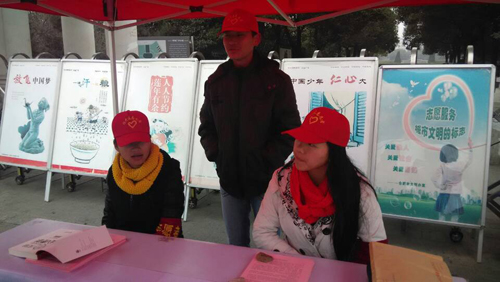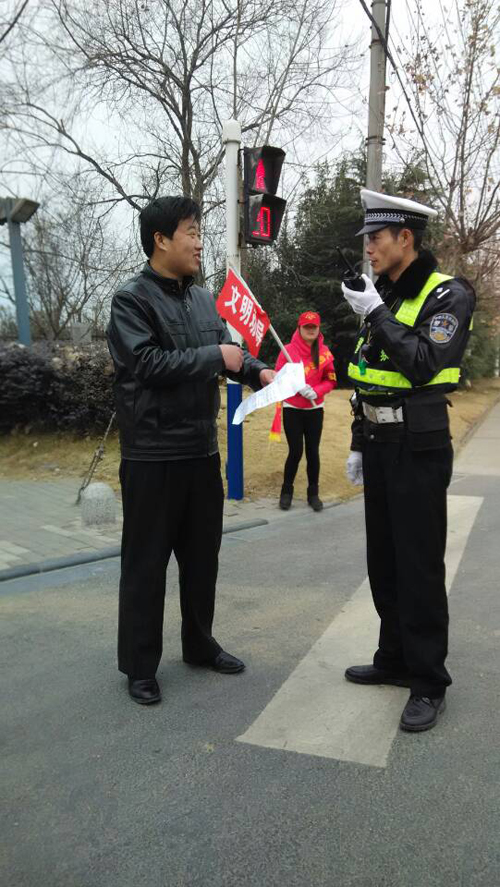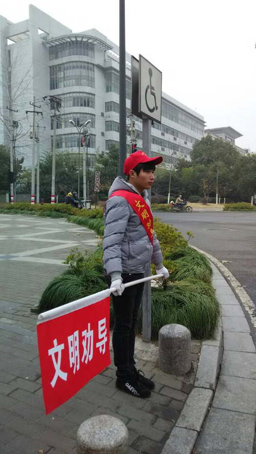 元月6日上午,接学院副院长陈孝江指示,学生处处长程光胜、管理系党总支副书记钱曼丽、经济贸易系党总支副书记高明一行赶赴合肥经开区看望我院各路段正在志愿服务的同学们。据了解,参加此次文明劝导活动的志愿者达100多人。同学们不畏严寒、坚守岗位,耐心劝导极少数不文明行为的市民,赢得大家的一致赞赏。“争创全国文明城市,我知晓、我参与 、我奉献”。目前,合肥市争创全国文明城市已进入迎检冲刺的关键时期,全市文明创建氛围进入高潮。