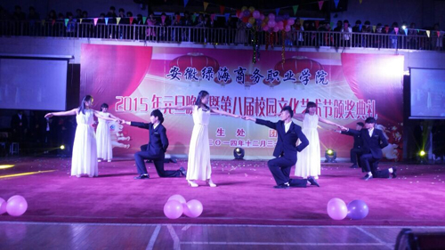 12月30日晚, 2015年元旦晚会暨第八届校园文化艺术节颁奖典礼在体育馆隆重举行。学院常务副院长丁元生,副院长陈孝江,副院长张以亭,院长助理常林虎以及全院各部门老师及学生莅临了晚会。