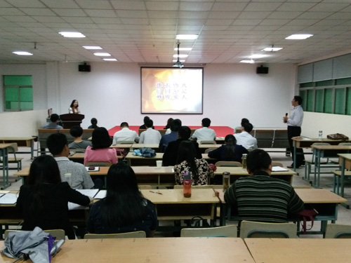 10月7日下午,365集团第二期青干班全体成员在《商道》创新创业训练场开展学习活动,自觉接受传统文化教育,用圣贤文化武装自己,共同打造精英团队。当晚,学院董事长陈孝云、党委副书记张以亭率全体青干班成员,参加了中秋、十一双节假期结束返校的2015级新生主题班会,并与学生们亲切交流。