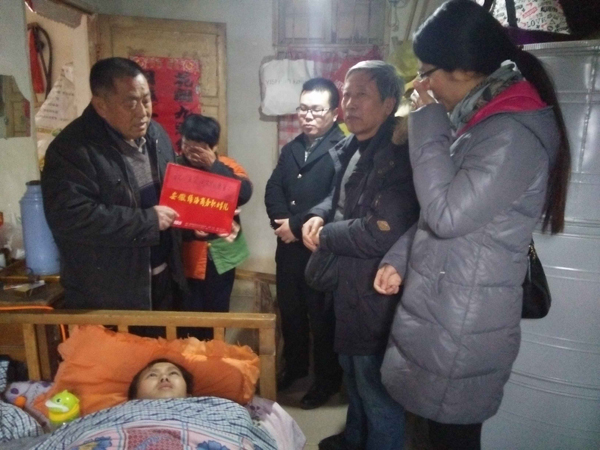 1月21日下午,受365集团董事长陈孝云的委托,学院工会主席童传富教授、学生处处长钱曼丽等一行四人冒着严寒前往肥东县白龙镇看望我院患病毕业生王艾,绿海学院师生员工的心与王艾紧紧相连。