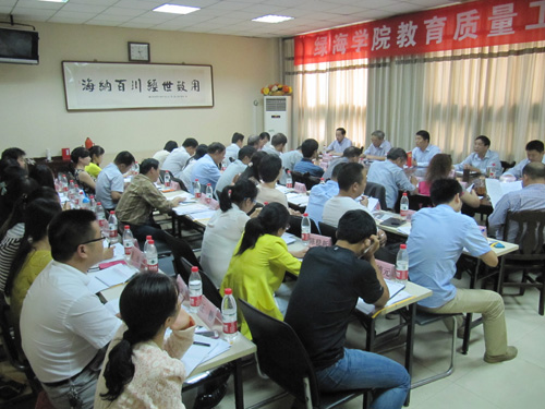 董事长陈孝云就教育质量工程建设作重要指示。他强调,沃土是万物生长之本,党的十八大和十八届三中全会为实现中华民族伟大复兴的梦打牢了思想基础,培育制度和文化沃土。在此大好形势下,绿海学院作为高等教育事业大家庭的一员,要坚定不移的践行社会主义核心价值,坚持不懈传承弘扬中华优秀传统文化,全面推进质量工程建设,打造精英师资、实施精细化管理,培育绿海育人沃土,更好的培养造就一大批适应建设发展的优秀学子。他指出,教育质量是一项承前启后的重要举措,也是学院评估通过以后教育质量提升的重要推进器;要着眼于长远,坚定不移的把提升学院教育教学质量作为绿海学院的新时期新使命。他要求全院教职工要团结协作,履行教师神圣职责,锐意改革,使我院人才培养模式不断适应现代职业教育发展要求,全面推进学院教育教学事业的健康发展,让绿海成为培养栋梁之才的人文沃土。