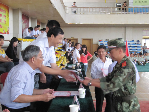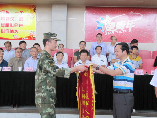 副院长张以亭宣读了《关于表彰2013级新生军训先进集体和优秀个人的决定》,与会领导为受表彰的集体和个人颁奖。学院向承训部队赠送了锦旗。