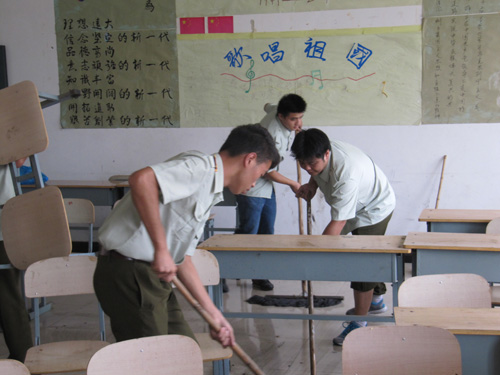 总务处组织师生清扫教室