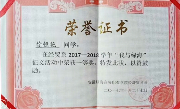 获得本次征文活动一等奖的徐恒艳同学说:“感谢绿海让我从一个懵懂的小女孩成长为知书达理的青年大学生,在绿海星青年人才培养模式下,我找到了自己前进的目标,努力的方向和未来的梦想,感谢一路陪伴我的导师和同学,这个世界,只要你够勇敢,就够精彩。”参赛的选手也纷纷表示,此次征文活动加深了他们对校园文化的理解和认识,更加热爱生活。