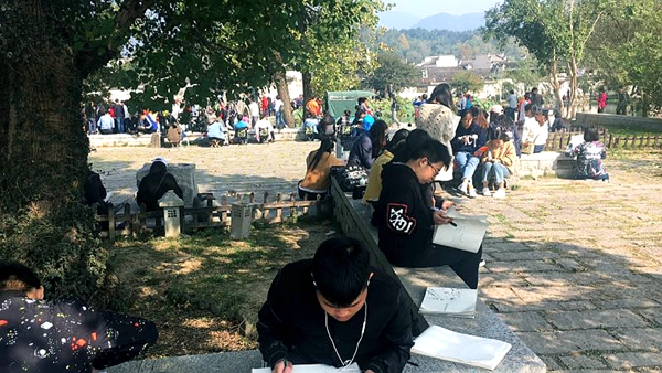 外出写生是艺术类专业教学的主要实践课程,学生通过走出课堂、走进社会,全面深入接触生活、体验生活,旨在引导学生善于观察生活、认识生活、表现生活,这是体现艺术创作源于生活并服务于社会的重要教学环节。按照学院艺术系设计专业培养方案的要求,从10月23日开始,艺术系2017级各专业学生在指导老师的带领下来到安徽屏山、宏村两地进行为期半个月的风景写生活动。