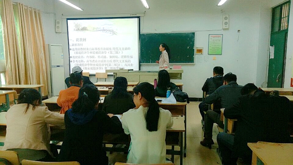 参赛老师从课程标准、单元教学设计思路、教材、教法、学法、教学过程、教学反思等方面进行说课,镇定自若,重点突出,结构合理,表达清晰,仪态大方,充分展示了学院教师良好的教学素质,赢得了各位评委和观赛老师的一致好评。