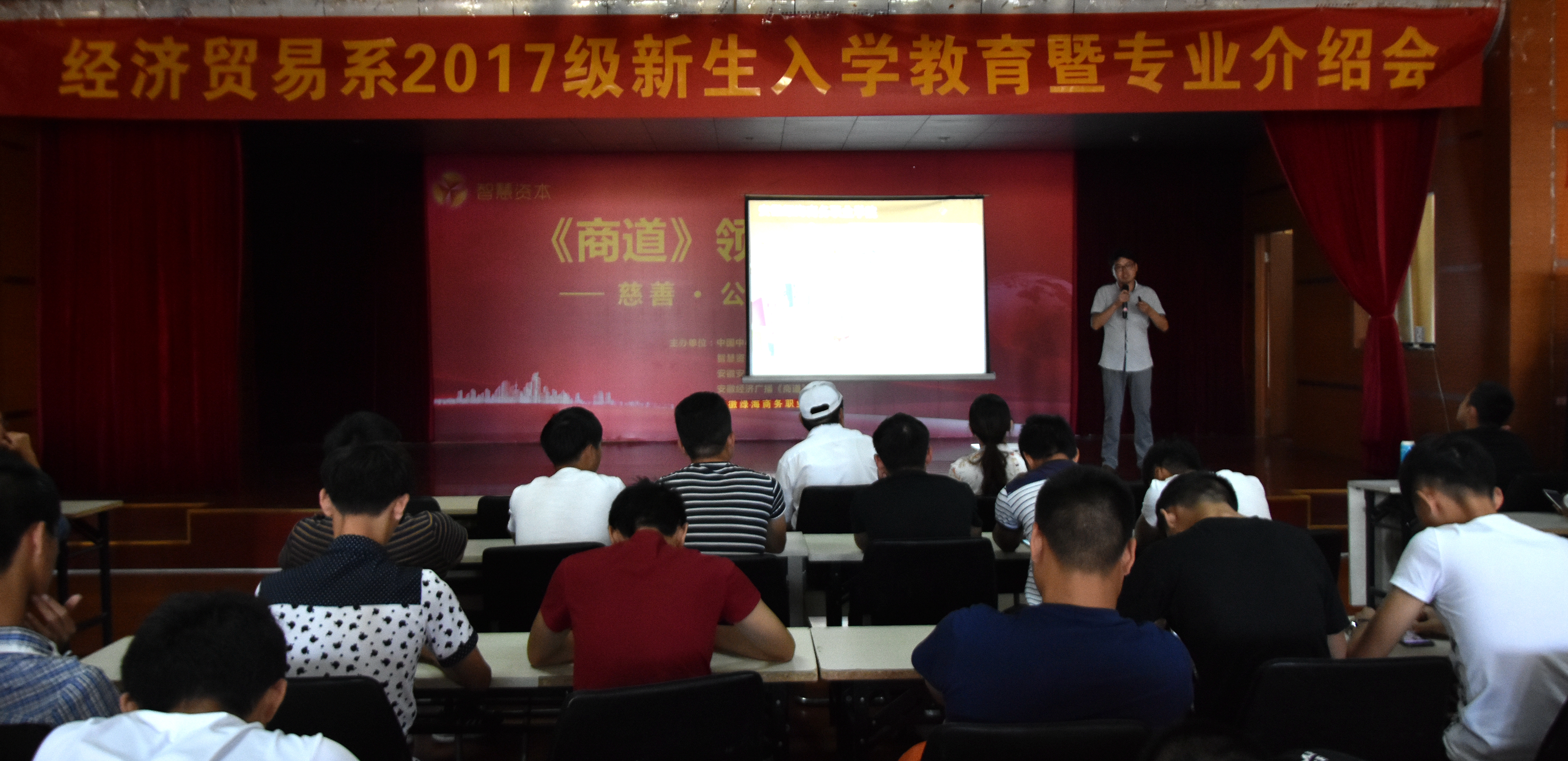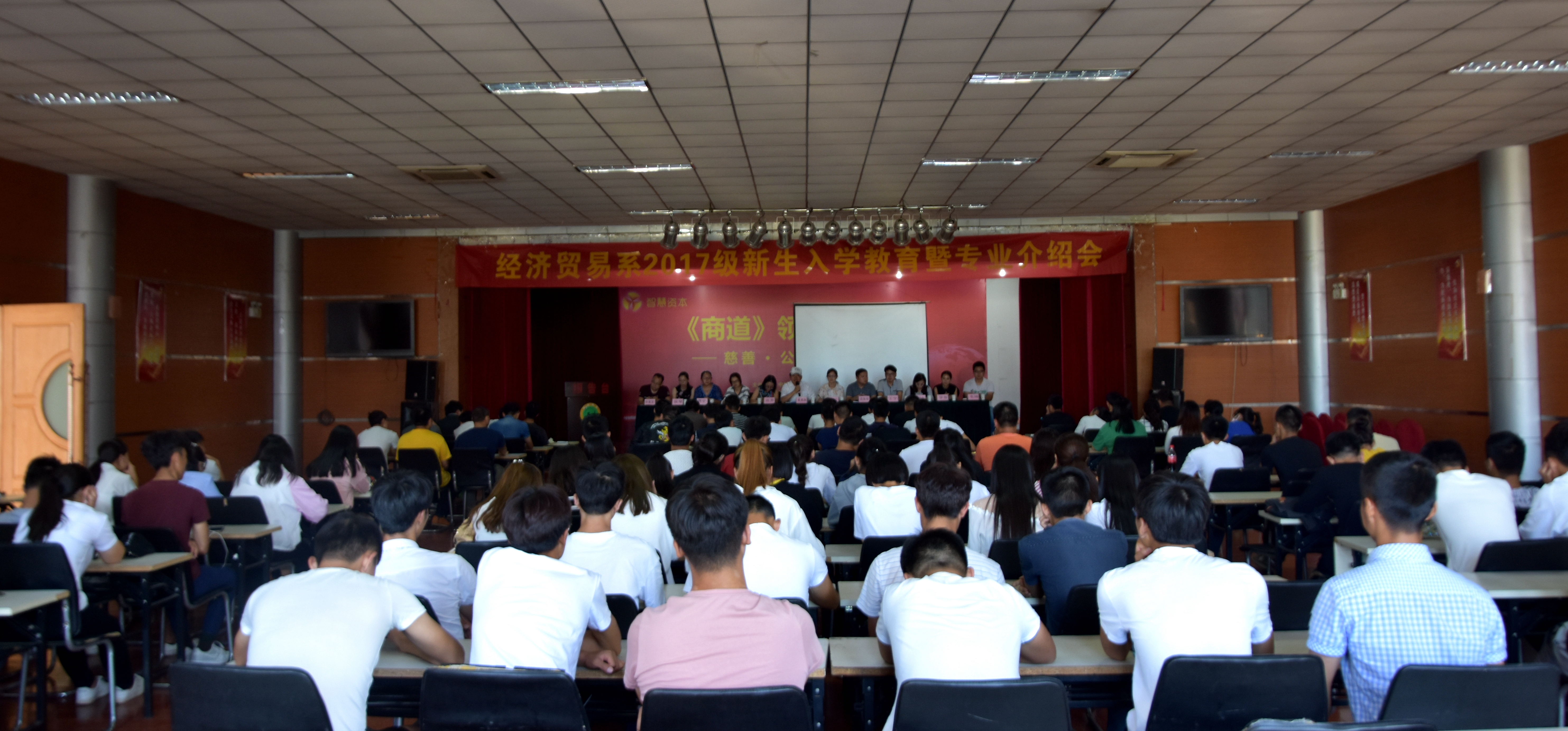 9月14日下午,经贸系在院学术报告厅隆重举行2017级新生入学教育大会,系主任夏英祝教授、系党总支副书记黄松、系教学秘书汪芳、全系教师、辅导员及17级全体新生参加大会,会议由系团总支书记范贤举主持。