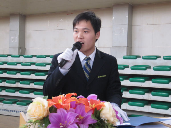 此次典礼中较为突出的一部分内容即欢送旅游管理专业10名赴北京参加全国“两会”服务的学生。黄天驰、束海峰、路曼等10名优秀学生突破重围,脱颖而出,前往全国“两会”指定后勤服务单位北京新世纪日航饭店从事接待服务工作。赴京代表黄天驰同学在向全体师生的宣誓中,庄严承诺他们将谨记使命,竭尽全力,圆满完成任务。