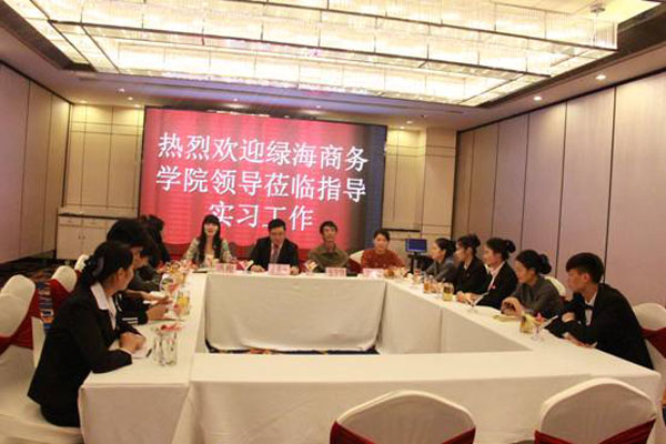 同庆楼集团•天鹅酒家酒店经理王孝杨、同庆楼集团培训部经理洪梅、招聘部经理曹丽娜等酒店领导热情接待了旅游系领导一行,并介绍了学生们在酒店的实习情况。对我院学生的表现给予了高度评价,认为我院实习学生积极肯干、勤奋好学、悟性好、上手快、并有较强的自我约束意识、综合素质较高,符合企业的人才培养要求,并期待我院能继续输送更多优秀的学生。