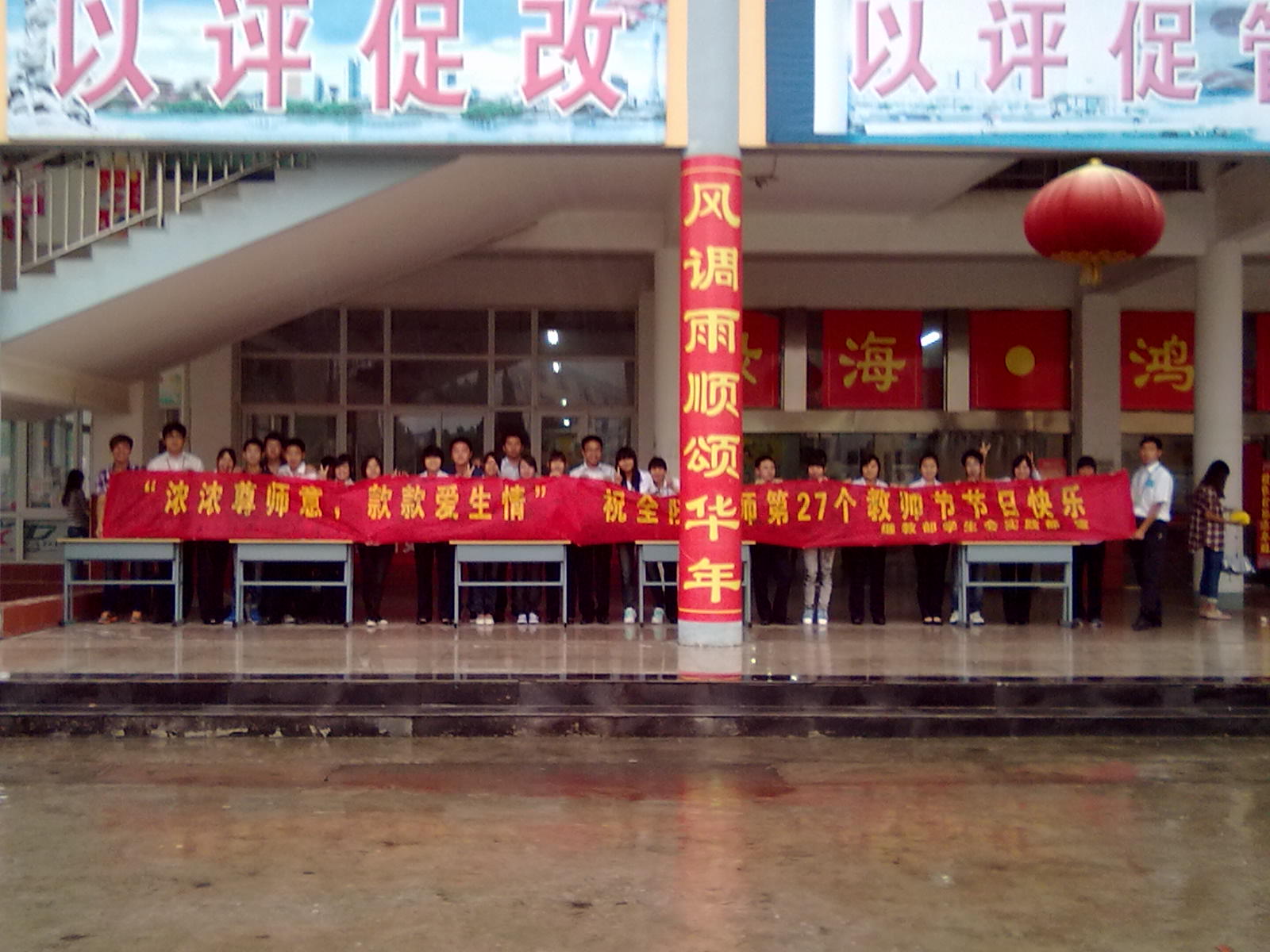 为迎接第二十七个教师节,9月9日,继续教育部团总支学生会在大食堂门口举行“浓浓尊师意,款款爱生情”为主题的签名寄语活动。