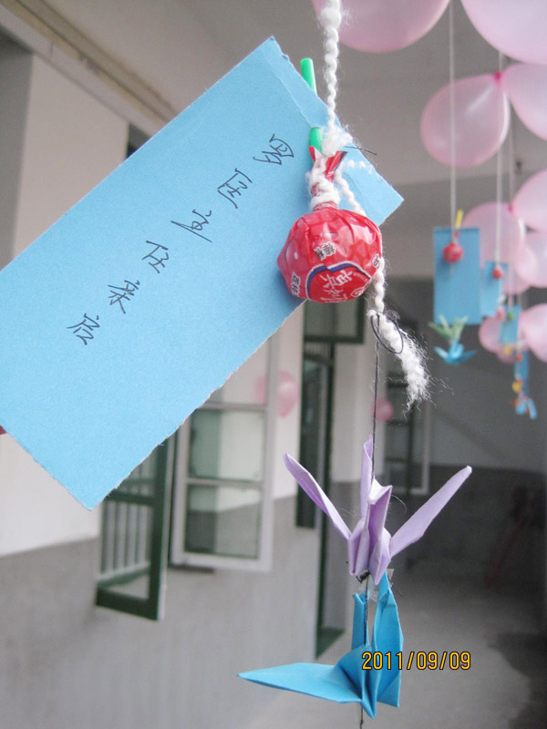 鲜花、彩球、千纸鹤、祝福语……9月9日清晨上班,管理系全体教师就收到学生们送的一份“大礼包”。
