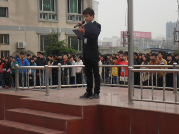 学生代表方宇星带领大家在国旗下庄严宣誓,表现出同学们立志成才和雄心报国的决心。