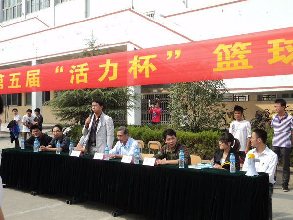 仪式上,首先是邢江淮副主任致开幕词,倡导把本次篮球联谊赛办成一个“文明、热烈、精彩、圆满”的盛会。接着,总裁判胡涛老师宣布比赛的规则,保证公平公正。随后,队员代表陈志翔同学宣誓“认真比赛,赛出水平,赛出风格”!
