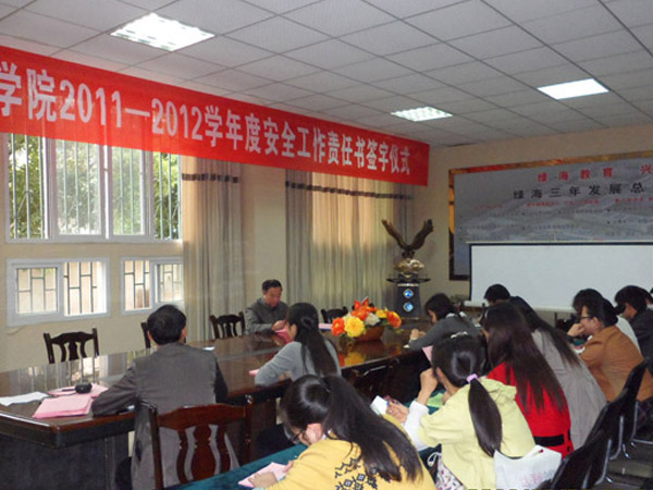 9月30日,经贸系举行辅导员安全工作责任书签字仪式。仪式由经贸系副主任戴昭慰主持。