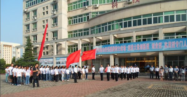 2013年6月3日清晨,在科技楼前举行了本学期的第五次升旗仪式,根据学院的统一安排,此次升旗为我系主办,全校师生共同参与。学院副院长陈孝江、管理系主任张学锋以及学生处副处长程光胜莅临本次升旗仪式。