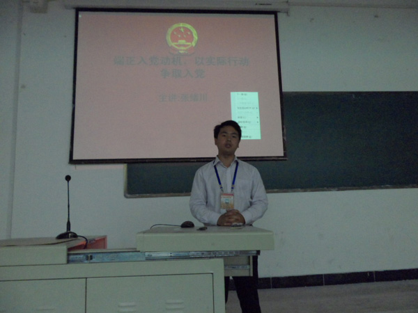 张绪川副书记在讲话中指出,党课的学习是入党程序中重要的环节,他希望全体学员一要摆正心态,明白作为入党积极分子的意义;二要端正学习态度,认真主动遵守党课学习的纪律,严肃认真对待此次培训;三要虚心学习,正视自身的差距,端正学习态度;四要珍惜此次学习的机会,端正入党动机。他强调了大学生党课培训的重要意义,对全体学员提出了明确的要求和今后努力的方向,同时还做了以“端正入党动机,做一名合格的大学生员”为主题的党课培训班第一讲。
