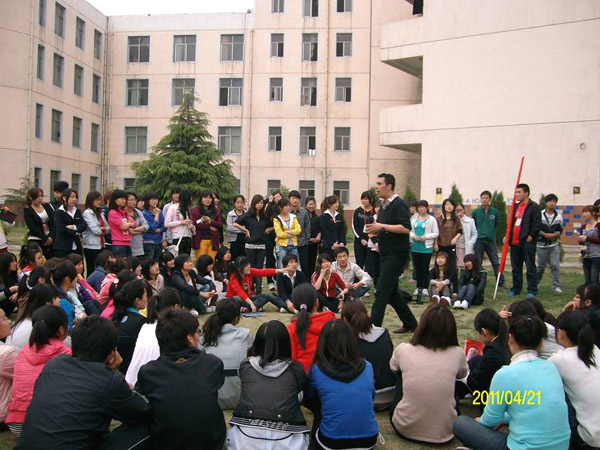 为增强学生的英语听说和口语能力,4月21日下午,由外语系商务英语教研室和大学英语教研室共同举办的英语角活动在科技楼前文化长廊举行。外语系副主任童传富、外籍教师Bob先生、商务英语教研室主任吴丽、大学英语教研室孙斌、教学秘书徐朔老师等与学生们一起参加了此次实践活动。