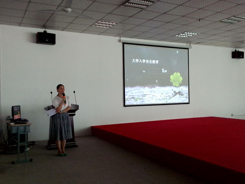陈萍从人身安全、财产安全、交友安全、保全措施四个方面展开了“大学生入学安全教育”讲座,通过图文并茂的方式给新同学们上了一堂生动形象的安全教育课。她要求每位新同学都要提高安全文明意识,努力学习灾难逃生技能,学会如何保护自己。并希望他们能够遵守学院各种规章制度,认真学习学生手册,树立节约用水。安全用电意识,做一个文明向上的当代大学生。