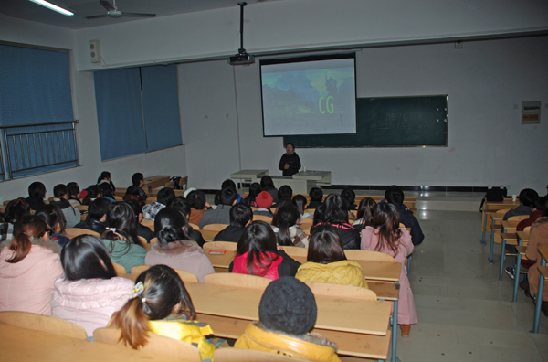 讲座中,车莉总监不仅为大家诠释了最新的CG定义、企业需求情况,还为学生展示了该公司制作的具有国际水准的CG、电影、游戏等作品,并对学生之后的学习给予了指导性建议。陈国强总监还就技术上学生的提问给予一一解答。整个讲座过程中,学生都认真听讲,积极互动,在寓教于乐的过程中,学到很多知识,学生反映非常好。