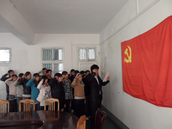 首先,主持人宣读了参加宣誓仪式的19名新党员名单,随后,全体学生新党员在杨敬雪的领誓下,举起紧握的右拳,面对鲜红的党旗,共同发出了“履行党员义务,执行党的决定,随时准备为党和人民牺牲一切……”的铮铮誓言;表达了忠于党、忠于祖国、忠于人民的决心。