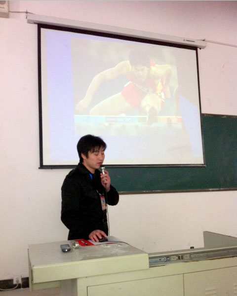 生命在于运动,今天储大为老师给大家带来的演讲主题是《体育与健康》。 演讲过程中,一张张绚丽的体育运动图片向大家展示了运动的魅力,但体育运动伴随的一定危险性也要引起大家的重视。通过本次演讲,旨在告诫大学生要加强体育锻炼,掌握正确的锻炼方法,有效的预防体育运动损伤的发生。现场气氛活跃,大家因为储老师的精彩演讲而不时的报以热烈的掌声。