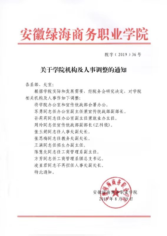院字[2019]36号 关于学院机构及人事调整的通知