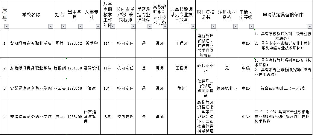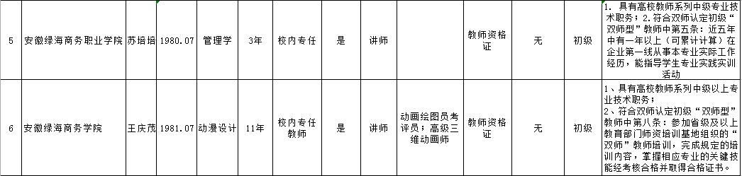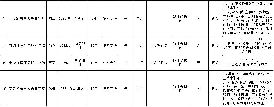 2018年度安徽省高等职业院校“双师型”教师认定情况一览表