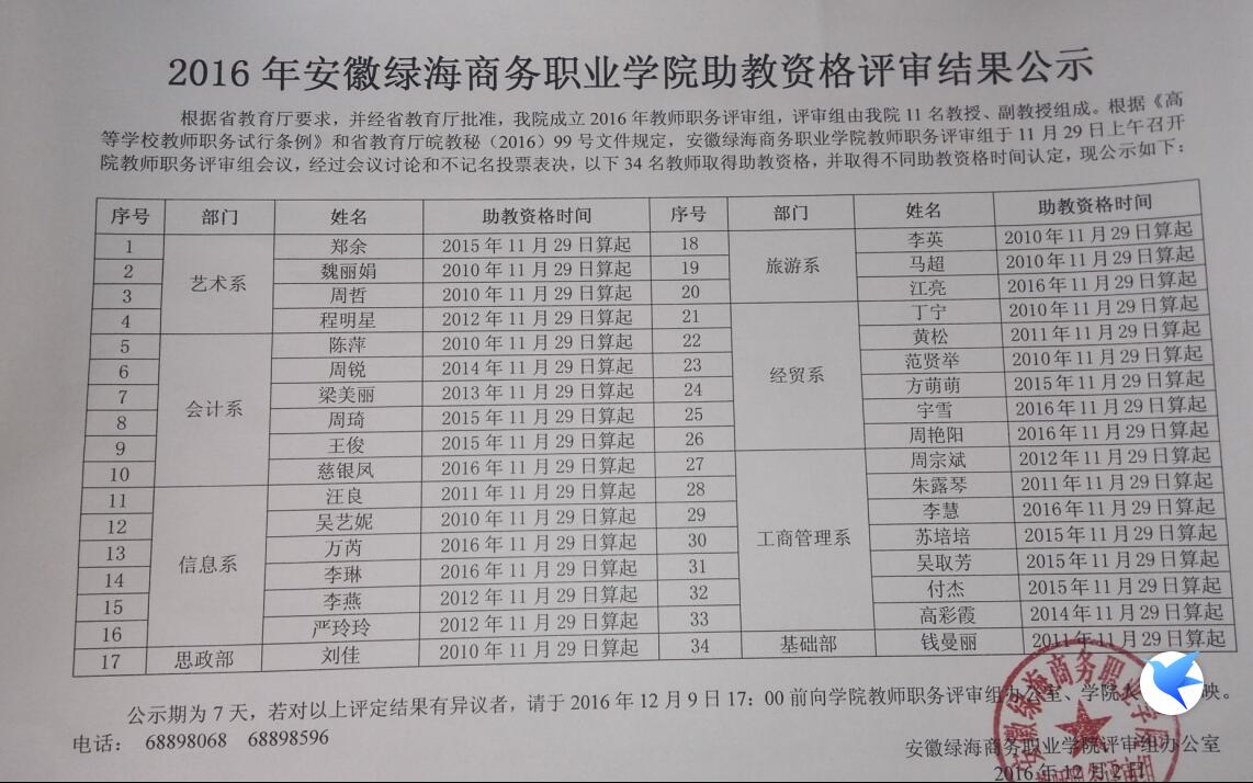2016年365集团助教评审资格结果公示