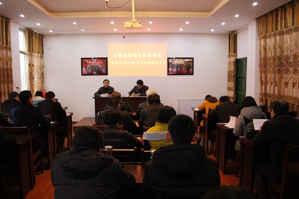 会上,江传瑞作动员讲话,他指出,开展“讲看齐、见行动”学习讨论,是深入学习贯彻党的十八届六中全会精神、习近平总书记系列重要讲话特别是视察安徽重要讲话精神的重要抓手,是“两学一做”学习教育活动重要内容之一,是持续深化“两学一做”学习教育的重要举措,对推进学院教育教学具有积极促进作用。他强调,各党总支、党支部要充分认识学习讨论的重要意义,把握学习讨论的主要内容和关键要求,做到四围绕,四查找,四确保。要坚定不移地维护以习近平同志为核心的党权威,更加自觉地在思想上政治上行动上同以习近平同志为核心的党保持高度一致,更加扎实地把党、省委各项决策部署落到实处。做到把学习讨论与贯彻省、市党代会精神结合起来,与推动工作、推进学院事业发展结合起来,把党员干部激发出的工作热情和进取精神转化为做好工作的强大动力。