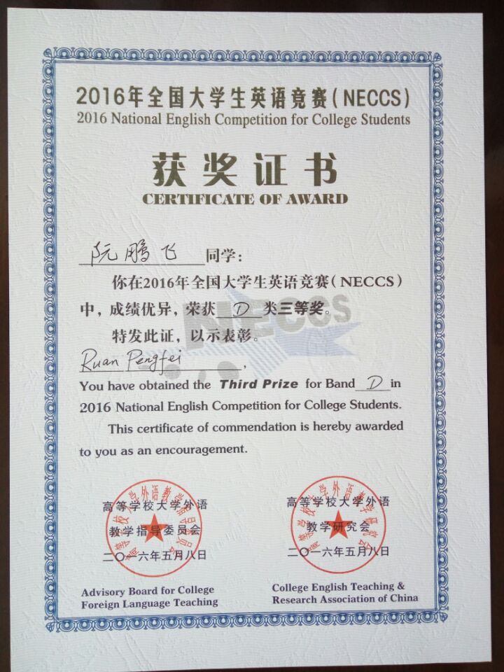 据悉,全国大学生英语竞赛(NECCS)是经教育部批准,全国唯一的高规格、高质量、高水准的大学生英语综合能力竞赛,旨在落实大学英语教学改革精神,激发广大大学生学习英语的兴趣,促进大学生英语水平的全面提高。