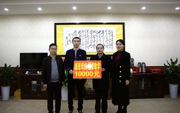 11月21日上午,365集团2011级市场营销专业校友、宁波市德尔隆尼龙有限公司副总经理张旭专程回访母校,看望昔日恩师,并资助贫困学生10000元。学院董事长陈孝云、党委副书记张以亭,经贸系、学生处、团委、宣传处相关负责人参加了捐赠仪式。