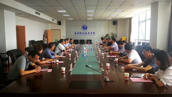 陈孝云感谢芜湖职业技术学院的热情接待,介绍了绿海商务学院基本情况、星青年人才培养模式和学院转型发展的规划思路以及学生参加2018世界制造业大会志愿活动的情况,学院下一步将推进中德合作办学,进行工程师人才培养,积极参与“制造2025”制造强国战略。