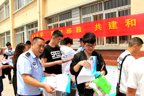 5月24日中午,学院保卫处联合辖区公安分局、国保大队、派出所在校园内共同开展“崇尚科学,反对邪教,共建和谐校园”宣传教育活动。
