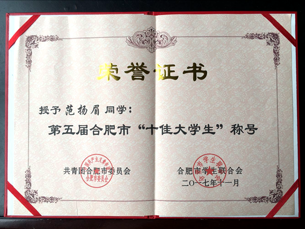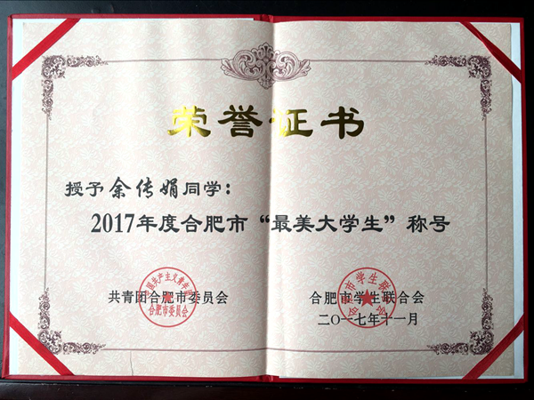 两学子获2017年合肥市“十佳大学生““最美大学生”称号