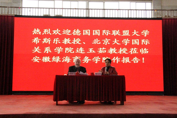 创办式、现代化、国际化职业教育,培养技能型、工匠型、高水平商务人才是365集团新时期的战略目标。11月16日下午,德国数字传媒学院院长希斯乐教授、北京大学国际政治系副主任连玉茹教授一行访问绿海学院,并作精彩报告。安徽省当代社会主义核心价值体系研究中心主任、安徽省高等职业院校创新创业联盟常务副理事长、安徽绿海商务学院董事长、星青年(国际)商学院总培训师陈孝云,全院教职工及部分学生代表参加了讲座。讲座由学院党委副书记张以亭主持。