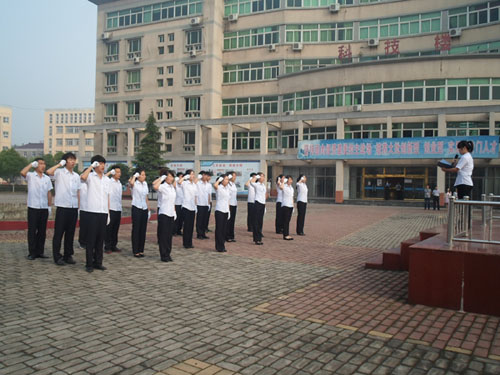 5月20日清晨,管理系与外语系在科技楼前举行了本学期的第四次升旗仪式。学生处副处长程光胜、管理系团支部书记刘璐璐老师及外语系师生参加了此次升旗仪式。