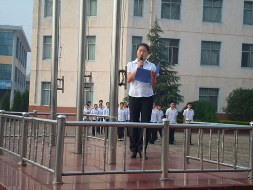 外语系学生代表殷咪咪同学在国旗下发言,号召大家要坚持心中梦想,不轻易放弃,勇敢做一个有梦想的人,以坚决的信心,努力的奋斗!
