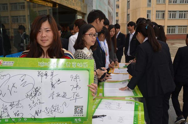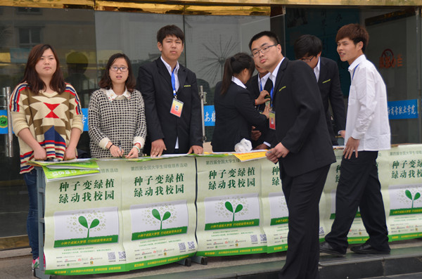 活动刚开始,同学们的热情度就很高。院学生会成员分别在教学楼的主道、宣传栏、体育馆、综合楼以及宿舍楼周围,向路过的同学宣传“签名送种子”,吸引师生纷纷驻足观看、领取种子。