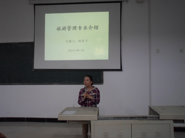 活动开始,首先,由徐国成老师介绍工商企业管理专业在市场上所占优势并提出未来在20年内存在工商管理人才的巨大缺失,教导新同学要明确自己的发展方向和提高专业能力。接着,由赵英子老师对旅游、餐饮、会展三大专业做整体介绍,在使同学们了解专业的同时,也明确就业方向。杨志仁教授对此次活动做重要补充,他鼓励同学们要对自己的专业及以后的就业有信心,同时,建议在校期间积极参加专升本考试。